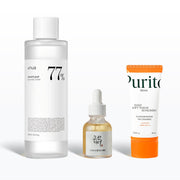 This bundle is designed to calm sensitive skin, boost radiance, and protect from daily sun damage. Whether you're targeting redness, dullness, or uneven texture, this set delivers hydration, glow, and barrier care — all in a lightweight, skin-loving format.